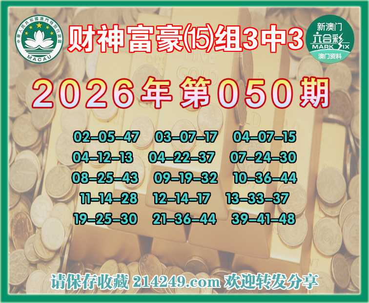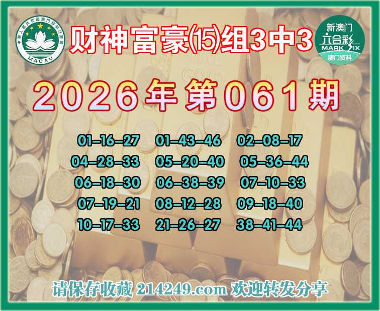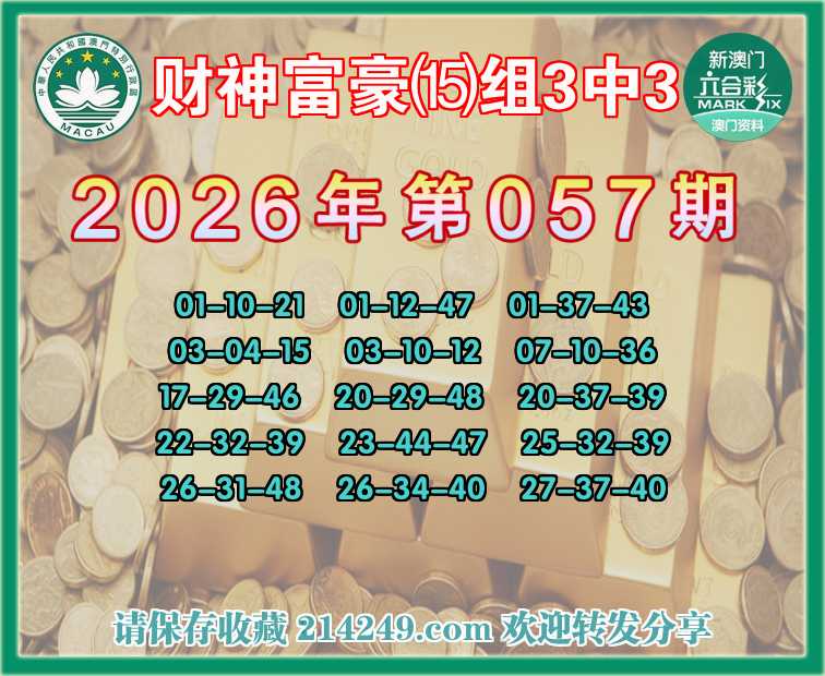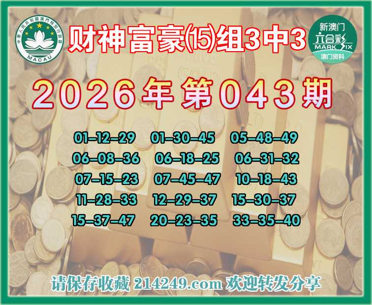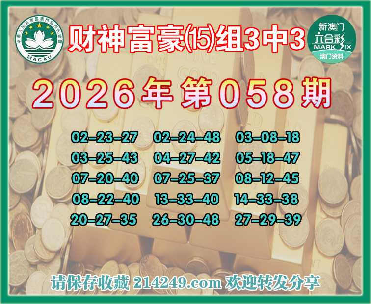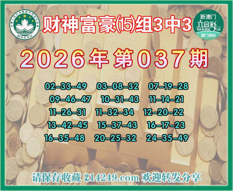 062期:财神富豪【⒂组3中3】〓 关注中奖