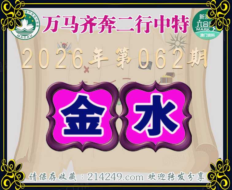 062期:《万马齐奔》 🧸二行中特🧸【金.水】开:00准
