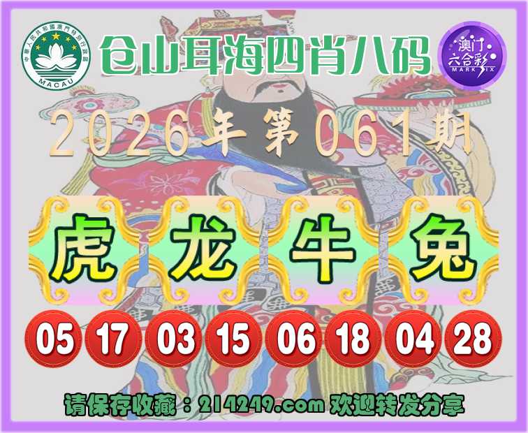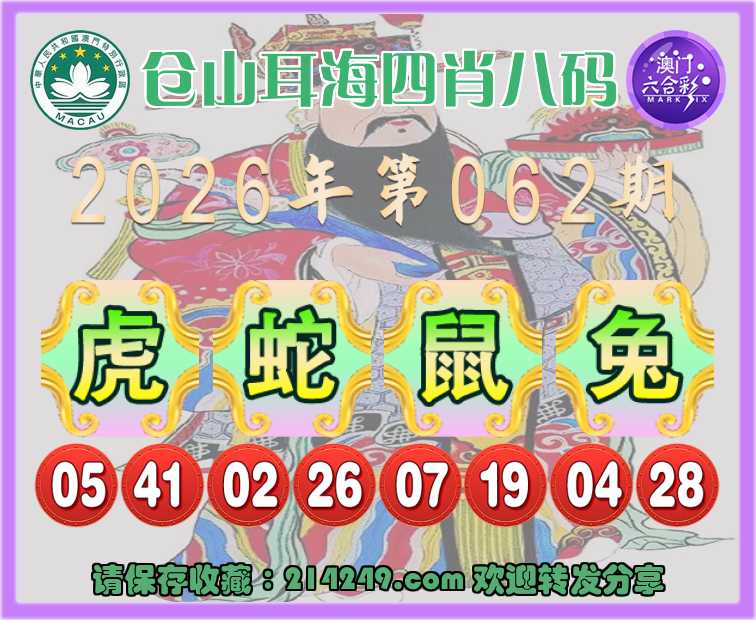 062期:仓山耳海【四肖八码】〓 公式推算