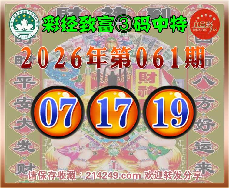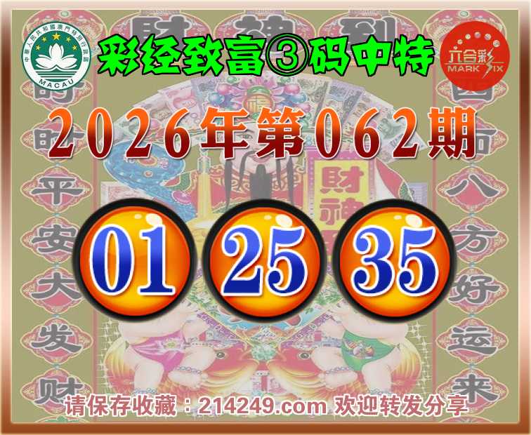 062期:彩经致富【③码中特】〓 信心百倍